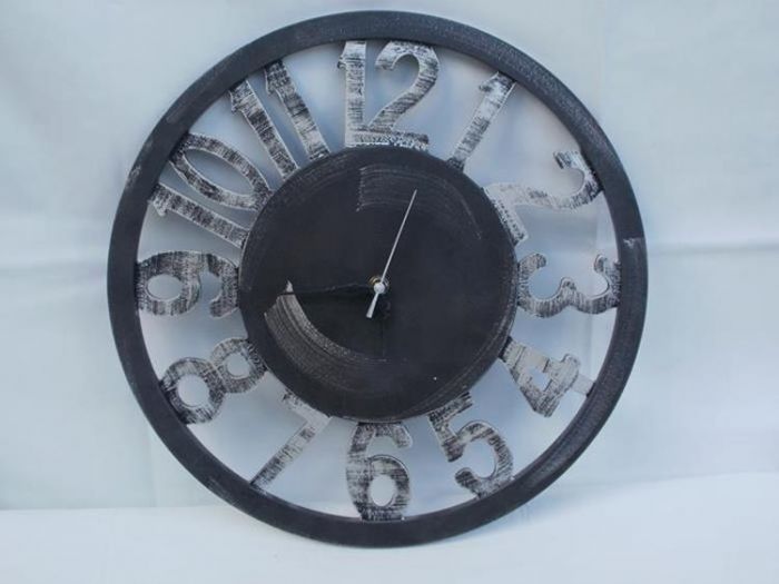 Diese nostalgische ca. 40 cm große runde Wanduhr aus Holzfasern sieht aus wie ein Wagenrad, in das die einzelnen Ziffern eingearbeitet wurden.Die Wanduhr passt wunderbar in eine Wohnung mit antiken Möbeln oder im Landhausstil. Die Uhr ergibt einen schönen Blickfang für jedes Heim.