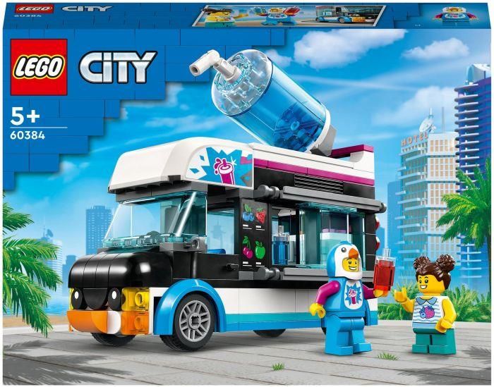 Mit dem LEGO City Slush-Eiswagen (60384) bringst du Sommerlaune ins Kinderzimmer. Dieses Spielzeug für Kinder ab 5 Jahren bietet viele coole Eigenschaften und Funktionen für fantasievolles Spielen. Der Pinguin-Eiscreme-Wagen ist in LEGO City angekommen. Dieses Spielzeugauto für Kinder mit seinem auffälligen Pinguindesign ist wirklich cool. Die Kinder begleiten die lustige LEGO Verkäufer-Minifigur im Pinguin-Kostüm in den Vorbereitungsbereich. Sie können das Fenster aufschieben, um die durstigen Kunden mit kalten Getränken aus den 4 Spielzeug-Slushy-Maschinen zu versorgen, und sich dann hinter das Lenkrad setzen und zum nächsten Ziel fahren. Dieses LEGO Fahrzeug Set wird mit einer leicht verständlichen, bebilderten Bauanleitung und der LEGO Builder App geliefert - einem digitalen Baubegleiter mit intuitiven Zoom- und Drehwerkzeugen, mit denen die Kinder das fertige Lkw-Spielzeug Modell während des Baus aus allen Blickwinkeln betrachten können. Die LEGO City Spielzeugbausätze helfen Kindern, Selbstvertrauen und wichtige Alltagskompetenzen zu entwickeln, während sie mit LEGO Fahrzeugen wie Spielzeugautos, Lastwagen und Hubschraubern sowie coolen Charakteren und einer Vielzahl von realen Schauplätzen bauen und spielen. Dieses Konstruktionsspielzeug ist ein tolles Geschenk zum Geburtstag für Jungen und Mädchen, die gerne mit Kinderspielfiguren und Fahrzeugen spielen. Der Pinguin-Slushy-Van ist 12 cm hoch, 14 cm lang und 6 cm breit. Enthält 194 Teile.