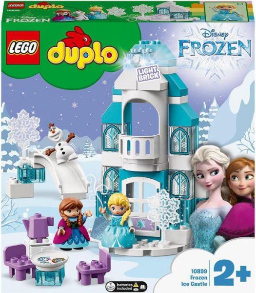 Besuche Anna, Elsa und Olaf aus Disneys Die Eiskönigin im Eispalast (10899) von LEGO DUPLO und gehe mit deinem Vorschulkind wertvolle Entwicklungsschritte beim kreativen Bauen und Spielen. In Rollenspielen mit ihren Lieblingsfiguren aus Die Eiskönigin verbessern Kleinkinder ihre sprachlichen und feinmotorischen Fähigkeiten und entwickeln ein soziales und emotionales Bewusstsein. Benutze die LEGO Mini-Puppen, um mit deinem Kind über die Beziehung von Prinzessin Elsa mit ihrer Schwester Anna zu sprechen, und erlebe unendlichen kreativen Spielspaß mit Olaf, dem Schneemann. Mit den bunten Leuchtsteinen, die den Eispalast aus Die Eiskönigin auf Knopfdruck beleuchten, können Mädchen und Jungen ab 2 Jahren die Szenen aus dem Film nachspielen, eigene Geschichten erfinden und endlosen Spielspaß erleben. Das Schloss der Eiskönigin ist 28 cm hoch, 19 cm breit und 16 cm tief. Enthält 59 Teile - Kinderspielzeug für Jungen und Mädchen ab 2 Jahren