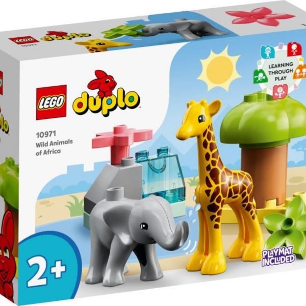 "Kleinkinder können mit dem LEGO DUPLO Spielset Wilde Tiere Afrikas"" (10971) in eine Welt voller Abenteuer eintauchen. Mit diesem Lernspielzeug ab 2 Jahren können kleine Tierliebhaber wertvolle Meilensteine in ihrer Entwicklung spielerisch erreichen. Mit den niedlichen Tierfiguren, einem Giraffen Spielzeug und einem Baby Elefant Spielzeug lernen die Kleinen die Tiere Afrikas kennen. Es gibt Blumen und einen Baum, an denen die leicht zu haltenden Safari-Tiere knabbern können, sowie eine 3-dimensionale, faltbare Spielmatte, die Kleinkinder erkunden können. Dieses Tier Spielzeug für Kleinkinder ist eine großartige Möglichkeit, den Selbstausdruck und die Feinmotorik der Kinder zu fördern, während sie endlose Rollenspiele mit den niedlichsten Tieren Afrikas genießen. Alle LEGO DUPLO Sets mit Tieren sind mit lustigen Geschichten, leuchtenden Farben, verschiedenen Figuren und vielen Details ausgestattet. Die Teile sind so gestaltet, dass sie von kleinen Fingern leicht genommen, platziert und auseinandergezogen werden können, um deinen kleinen Lernenden einen guten Start ins Leben zu ermöglichen! Die Spielmatte ist über 12 cm hoch, 17 cm breit und 12 cm tief. Der Baum ist über 8 cm hoch. Enthält 10 Teile."""