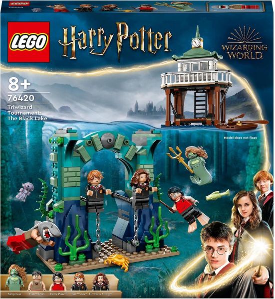 Schnappt euch eure Zauberstäbe und steigt in den Hogwarts-Express - es ist Zeit, die Herausforderungen mit diesem tollen LEGO Harry Potter Trimagisches Turnier: Der Schwarze See Spielset zu lösen! Mit 5 LEGO Harry Potter Minifiguren, einem Ruderboot, einem baubaren Modell des Stegs und einer Reihe von fantasievollem Zubehör können Kinder ikonische Szenen aus ihrem Lieblingsfilm nachspielen. Dieses Harry Potter Spielzeug für Kinder ist vollgepackt mit spannenden Features, die die kreative Seite deiner kleinen Zauberer zum Vorschein bringen. Die baubare Bogenruine wird mit 2 flexiblen Elementen geliefert, die den Effekt erzeugen, dass Hermine und Ron in der Luft schweben, während sie von Harry gerettet werden. Außerdem enthält sie 2 Höhlen mit versteckten Schätzen und es gibt ein Spielzeug-Boot, mit dem man über den See schippern kann, sowie ein Pier-Modell, das besondere Funktionen hat, wie z. B. das Eintauchen der Minifiguren in die Action! Die Kinder werden all diese coolen Ergänzungen nicht verpassen wollen. Dieses tolle LEGO Bauerlebnis ist perfekt für alle jungen Kinder, Hexen und Hexer ab 8 Jahren, die magische Abenteuer erleben wollen, die ihre Fantasie herausfordern und gleichzeitig ihre Konstruktionsfähigkeiten trainieren. Lade dir die LEGO Builder App herunter, um das Beste aus deiner Baureise herauszuholen, mit Werkzeugen, die dir dabei helfen. Das Modell ist über 18 cm hoch, 12 cm breit und 6 cm tief. Enthält 349 Teile.