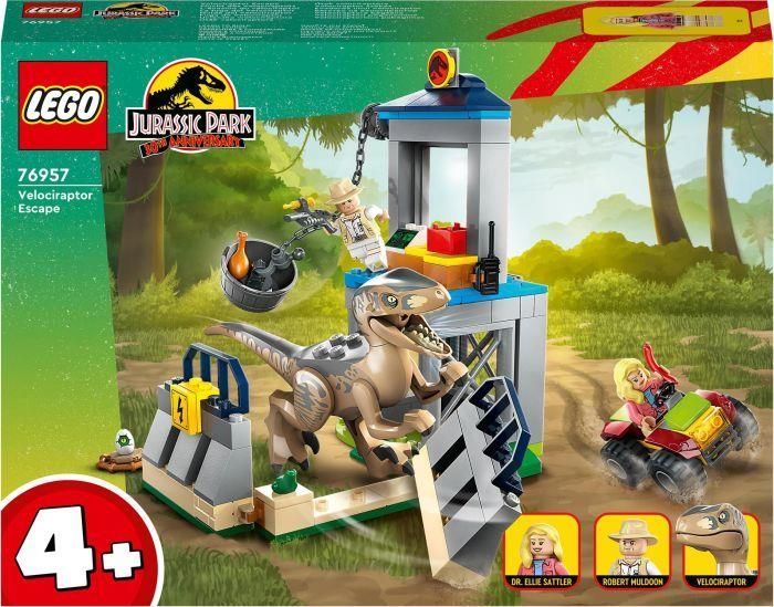 Mit diesem tollen LEGO Jurassic Park Flucht des Velociraptors (76957) Dinosaurier-Spielzeugset für Kinder ab 4 Jahren können Kinder lernen, wie man baut und spielt. Inspiriert von einer kultigen Jurassic Park Szene führt es Kinder in die aufregende Welt der LEGO Jurassic Park Spielzeuge ein. Das LEGO Jurassic Park Set enthält ein Dinosauriergehege mit einem Turm, einer Ausbrechfunktion und einer Winde, mit der das Futter auf die Velociraptor Spielzeug-Figuren herabgelassen werden kann. Das Set enthält außerdem einen baubaren LEGO Jurassic Park Jeep, die Minifiguren Dr. Ellie Sattler und Muldoon sowie lustige Zubehörelemente, die zum kreativen Spielen anregen. Die einfache bebilderte Anleitung ist perfekt für Kinder, die gerade erst lesen lernen. Für zusätzlichen digitalen Spaß sorgt die LEGO Builder App mit intuitiven Werkzeugen zum Zoomen und Drehen, mit denen die Kinder ihr Modell während des Bauens visualisieren können. Mit den LEGO Bauspielzeugen ab 4 Jahren lernen Kinder ein Universum aus ihren Lieblingsfilmen, Fernsehfiguren und Alltagshelden kennen. Sie wurden speziell mit Starter Steinen entwickelt, so dass auch Bauanfänger mit etwas Hilfe eines älteren Geschwisters oder Erwachsenen Fahrzeuge, Gebäude und mehr bauen können. Dieses LEGO Jurassic Park Bauset ist eine tolle Ergänzung für jede LEGO Jurassic Park oder Jurassic World Sammlung und ein tolles Geschenk für Kinder ab 4 Jahren, die Dinosaurier-Spielzeug und Figuren lieben. Das Dinosauriergehege mit Turm, das vom Film Jurassic Park inspiriert ist, ist über 17 cm hoch, 16 cm breit und 11 cm tief. Enthält 137 Teile.