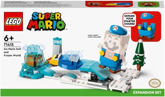 Mit dem Eis-Mario-Anzug aus dem LEGO Erweiterungsset (71415) können Kinder ein LEGO Super Mario Eis-Level bauen. Das Super Mario Spielzeug zum Bauen für Kinder ab 6 Jahren enthält einen Mario-Eis-Anzug, den der LEGO Mario (Figur nicht enthalten) tragen kann, sowie die LEGO Super Mario Figuren Cooligan und Goomba. Die baubare, blaue Eisplatte gibt Schlittschuhtöne von sich, wenn die interaktive Figur auf ihren Schlittschuhen läuft. Außerdem gibt es einen Raketenwerfer, mit dem der Cooligan in einen gemauerten Eisblock fliegt - wenn der Eisblock zerschlagen wird, kommt der Goomba zum Vorschein. Die Kinder müssen beide Gegner besiegen, um ihre Münzen zu erhalten! Zum Spielen wird der interaktive Starterpaket 71360, 71387 oder 71403 benötigt. Dieses Sammlerspielzeug ist ideal für Einzel- oder Gesellschaftsspiele. Außerdem können Kinder die LEGO Super Mario App herunterladen, um Bauanleitungen und vieles mehr zu erhalten. Diese LEGO Spielsets bringen die Super Mario Figuren in die reale Welt. Mit den Starterpaketen und den Erweiterungs-Sets können die kleinen Bauherren nach Lust und Laune erweitern, umbauen und einzigartige Level erstellen. Dieses coole Spielzeug ist ein tolles Super Mario Geschenk für Kinder ab 6 Jahren. Das modulare Spielzeug ist in seiner Grundform über 6 cm hoch, 20 cm breit und 12 cm tief Enthält 105 Teile.