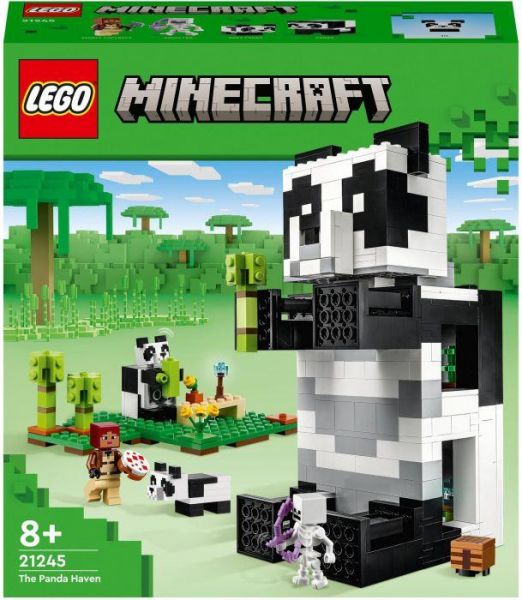 Das LEGO Minecraft-Set Das Pandahaus (21245) ist das ultimative Spielzeug für Minecraft Liebhaber, die Pandas lieben. Dieser Riesenpanda dient als voll eingerichtetes Minecraft-Haus, das alle Kinder ab 8 Jahren begeistern wird. Die Rückseite dieses baubaren dreigeschossigen Spielzeug-Hauses in Form eines Pandas lässt sich öffnen, damit dein Kind Zugang zu den voll eingerichteten Zimmern des Panda-Spielzeugs hat. Dank der Gelenkkonstruktion mit klappbarem Kopf kann das Pandahaus aufrecht oder auf allen vier Beinen stehen und sogar sitzen. Die Einrichtung der Zimmer kann man jeweils entsprechend anpassen. Als Minecraft-Charaktere sind ein Dschungelforscher, ein Panda, ein Pandababy und ein feindseliges Minecraft-Skelett für spannende Duelle enthalten. Gleich vor dem Gebäude beginnt der Bambusdschungel. Dort können die Spielerinnen und Spieler mit den Minecraft-Figuren tolle Abenteuer erleben, die Pandas mit Kuchen füttern oder das Minecraft-Haus gegen feindliche Minecraft-Mobs verteidigen. Für zusätzliches digitales Vergnügen beinhaltet die LEGO Builder App intuitiv nutzbare Vergrößerungs- und Drehfunktionen, die dein Kind das Modell beim Bauen näher betrachten lassen. Dieses Minecraft-Spielzeug ist super geeignet als Geschenk für alle Fans vom Minecraft Videospiel und Kinder ab 8 Jahren. Das Pandahaus ist 22 cm hoch, 11 cm breit und 10 cm tief. Enthält 553 Teile.
