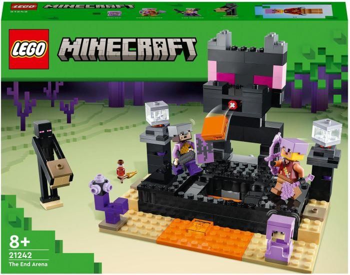 Das LEGO Minecraft-Spielzeug Die End-Arena (21242) ist der beste Schauplatz für packende Duelle und spannende Abenteuer mit Minecraft Figuren. Spielerinnen und Spieler ab 8 Jahren müssen ihr ganzes Minecraft Können aufbieten, um sich in dem packenden Spektakel zu behaupten, das dieses coole Action-Spielzeug bietet. Minecraft Spieler lassen einen Endkrieger und einen Drachenbogenschützen in der legendären End-Arena gegeneinander antreten. Die beiden Gegner tragen Rüstung und Waffen. Doch um die Minecraft-Arena mit heiler Haut verlassen zu können, müssen sie auch noch andere Gefahren meistern. Drückst du den Auslöser, spuckt die hoch über die Arena emporragende Enderdrachen-Statue Lava aus. Und wenn sich der bewegliche Boden unter den Füßen der Gegner öffnet, kommt ein Lavatümpel zum Vorschein. 2 beliebte Minecraft Figuren – ein Enderman und ein Shulker – sowie vertrautes Zubehör aus dem Videospiel, darunter auch eine goldene Karotte und ein Trank, bieten noch weitere Spielmöglichkeiten. Für zusätzliches digitales Vergnügen beinhaltet die LEGO Builder App intuitiv nutzbare Vergrößerungs- und Drehfunktionen, die dein Kind das Modell beim Bauen näher betrachten lassen. Dieses Minecraft Action-Spielzeug ist toll für alle Kinder ab 8 Jahren, die Fans vom beliebten Minecraft-Videospiel und coolen Minecraft-Geschenken sind! Die End-Arena ist 13 cm hoch, 17 cm breit und 13 cm tief. Enthält 252 Teile.