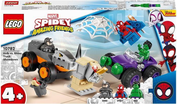 Mit der Marvel Box „Hulks und Rhinos Truck-Duell (10782) aus der LEGO Marvel Serie „Spidey und seine Super-Freunde können kleine Superhelden einen rasanten Spielzeug-Monster-Truck steuern. Die Kinder können ihre Lieblingsszenen aus der beliebten Disney+ Serie nachspielen und Spider-Man und dem Hulk dabei helfen, Rhinos Bankraub zu vereiteln. Für besonderen Spielspaß sorgen die Monster Trucks, die in dieser Marvel Box zum Bauen und Sammeln enthalten sind. Jeder Monster Truck verfügt über eigene coole Details: Rhinos Truck besitzt ein Horn zum Rammen, während der Truck des Hulk ein Paar riesige, kampfbereite Fäuste in petto hat. Dieses Hulk-Spielzeug zum Bauen für Kinder ab 4 Jahren wird mit 2 Grundplatten geliefert, damit die Kinder sofort mit dem Spielen beginnen können. Jeder Beutel enthält ein Modell und eine Minifigur – so müssen die Kinder nicht alle Modelle fertigstellen, bevor der Spielspaß beginnen kann. Dank der leicht verständlichen, bebilderten Anleitung ist dieses Spider-Man LEGO Set auch geeignet für Kinder ab 4 Jahren, die noch nicht lesen können. Auch Erwachsene können mitbauen und ihr Wissen weitergeben, damit die kleinen Spider-Man-Fans schnell zu echten Baumeistern werden. Dieses Hulk-Spielzeug zum Bauen für Jungen und Mädchen ab 4 Jahren ist eine mit viel Liebe gestaltete LEGO Marvel Geschenkidee für Vorschulkinder und eignet sich ideal als Geburtstagsgeschenk oder Überraschung für einen Freund oder eine Freundin. Das Modell ist über 4 cm hoch und 10 cm lang. Rhinos Monster Truck ist über 6 cm hoch und 11 cm lang. Enthält 110 Teile.